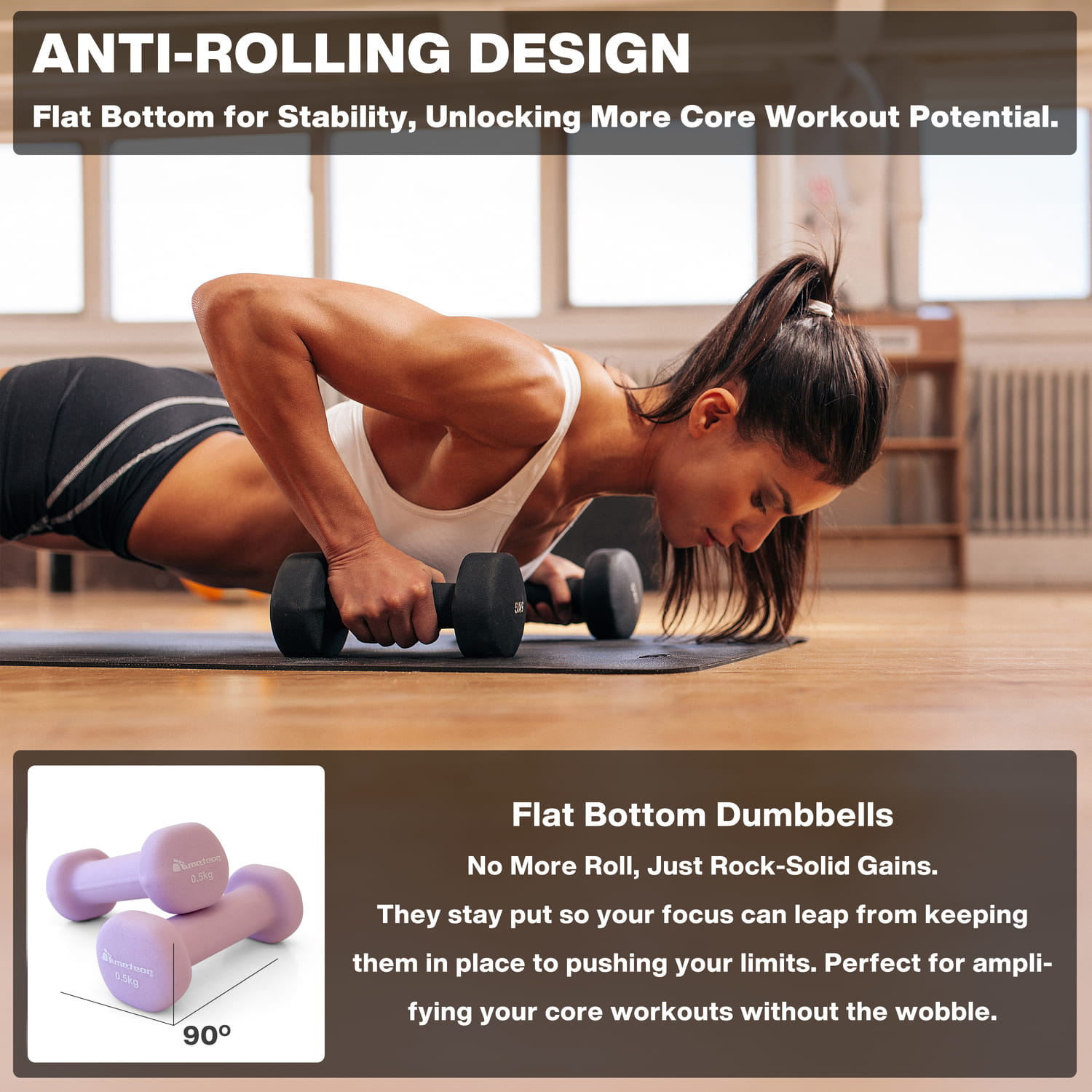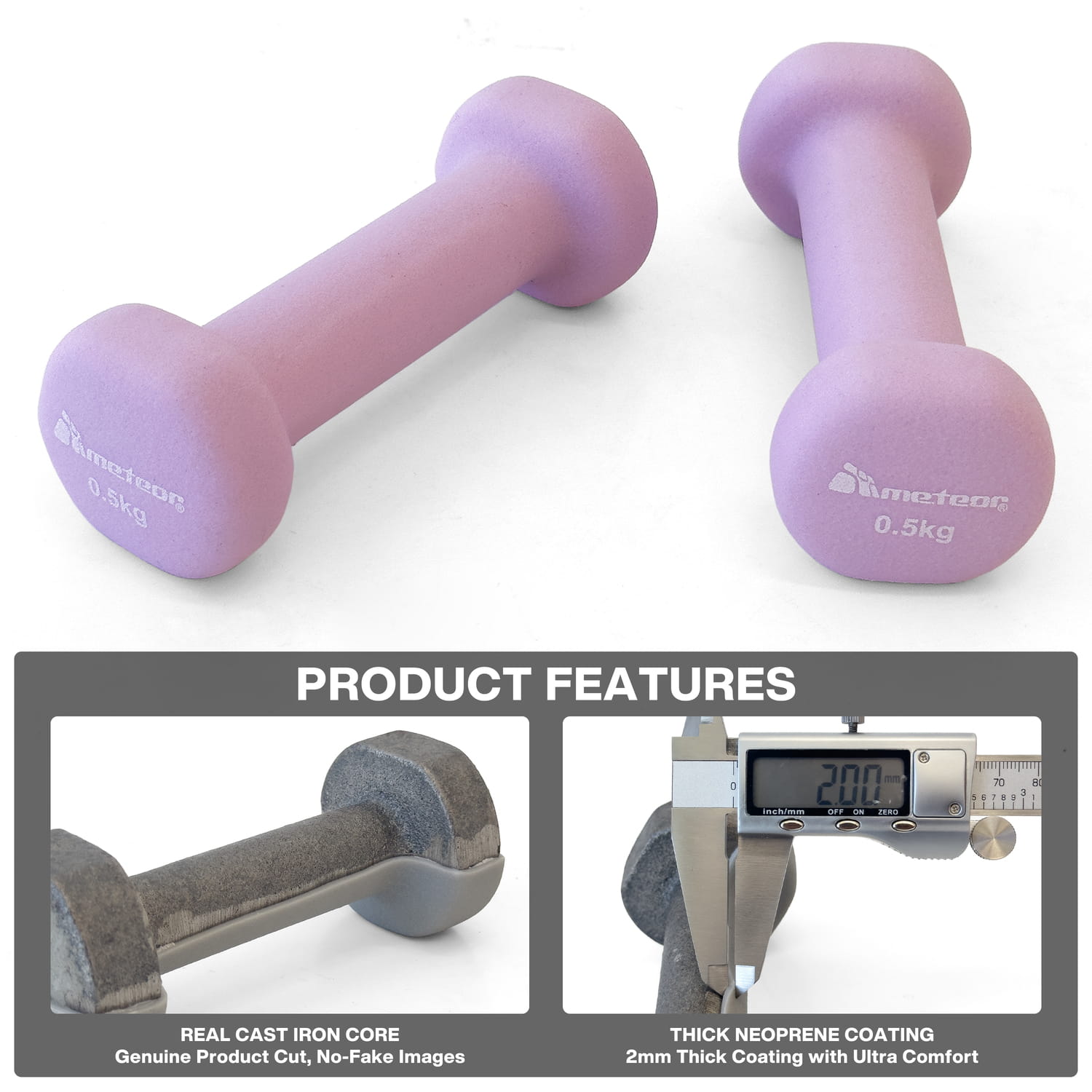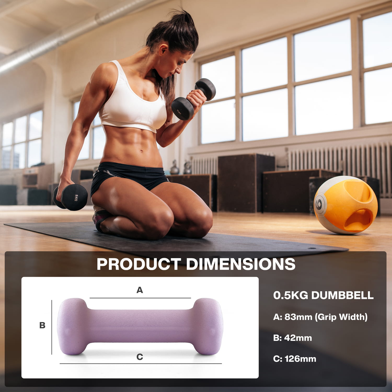 0.5kg x 2Perfect for Physical Therapy & Light Toning: These 0.5kg dumbbells are ideal for rehabilitation, beginners, or those looking to execute movements with a focus on form and endurance rather than heavy lifting. | 1kg x 2Enhance Your Cardio Workouts: The 1kg pair is excellent for adding a light resistance to cardio routines, helping to improve muscular endurance and elevate your calisthenics or aerobics sessions. | 2kg x 2Step Up Your Fitness Game: The versatile 2kg dumbbells are great for stepping up from basic exercises to more intense toning workouts, suitable for arm strengthening and Pilates. | 3kg x 2Build Strength & Definition: As you progress, these 3kg weights are your next challenge, perfect for building more strength and muscle definition with a moderate level of resistance. |